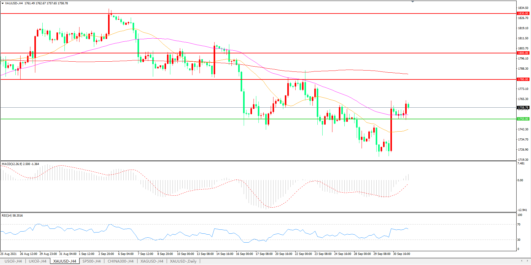 交易策略:在1750.00之上看涨,目标1780.00 1800.00