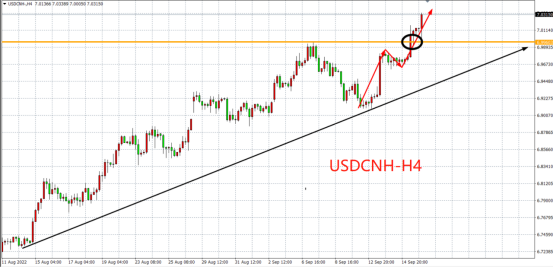 美元兑人民币已涨破前高点6.9960,下一阻力是2020年中旬创下的高点7.19附近。