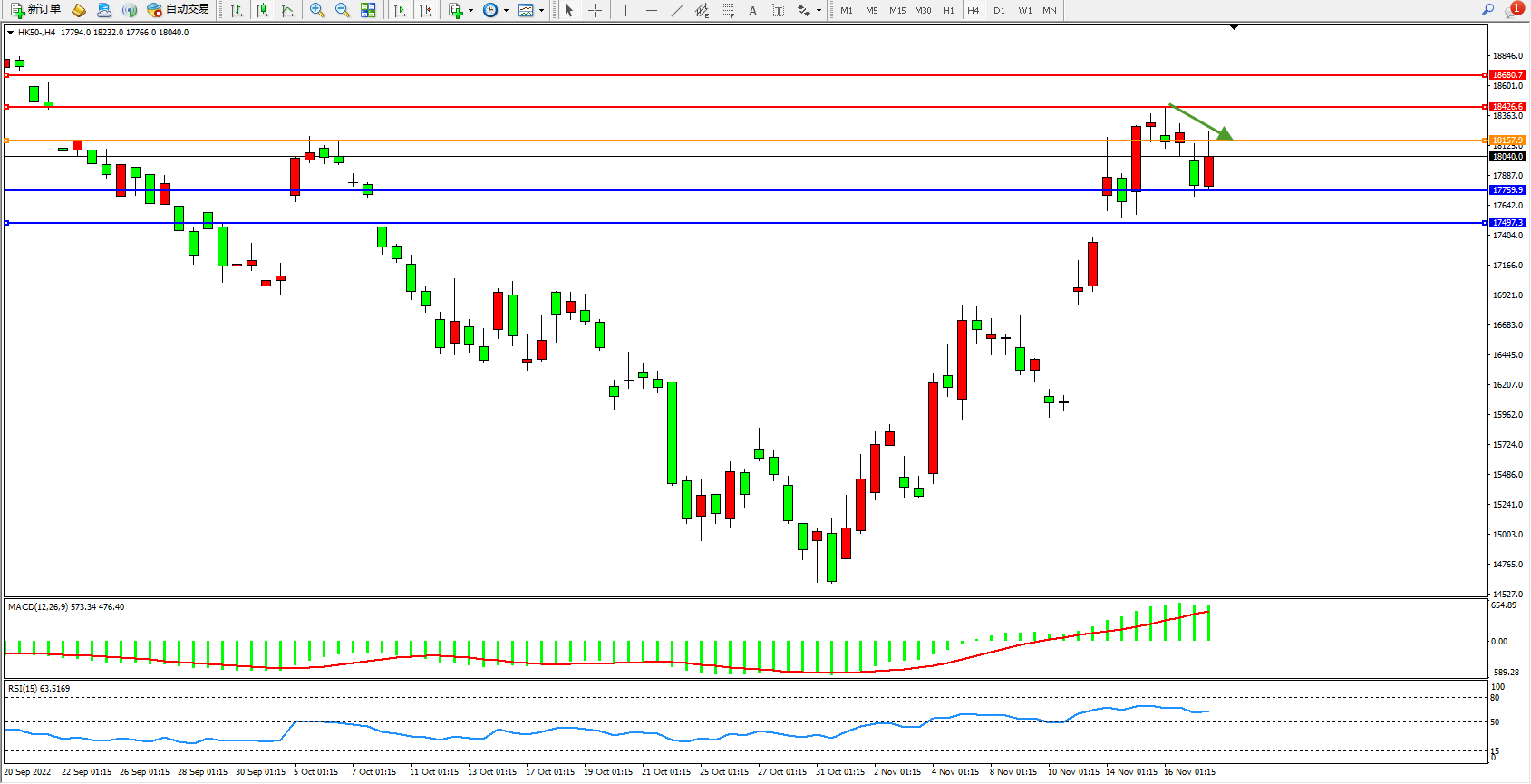 恒指HK50 4小时图
