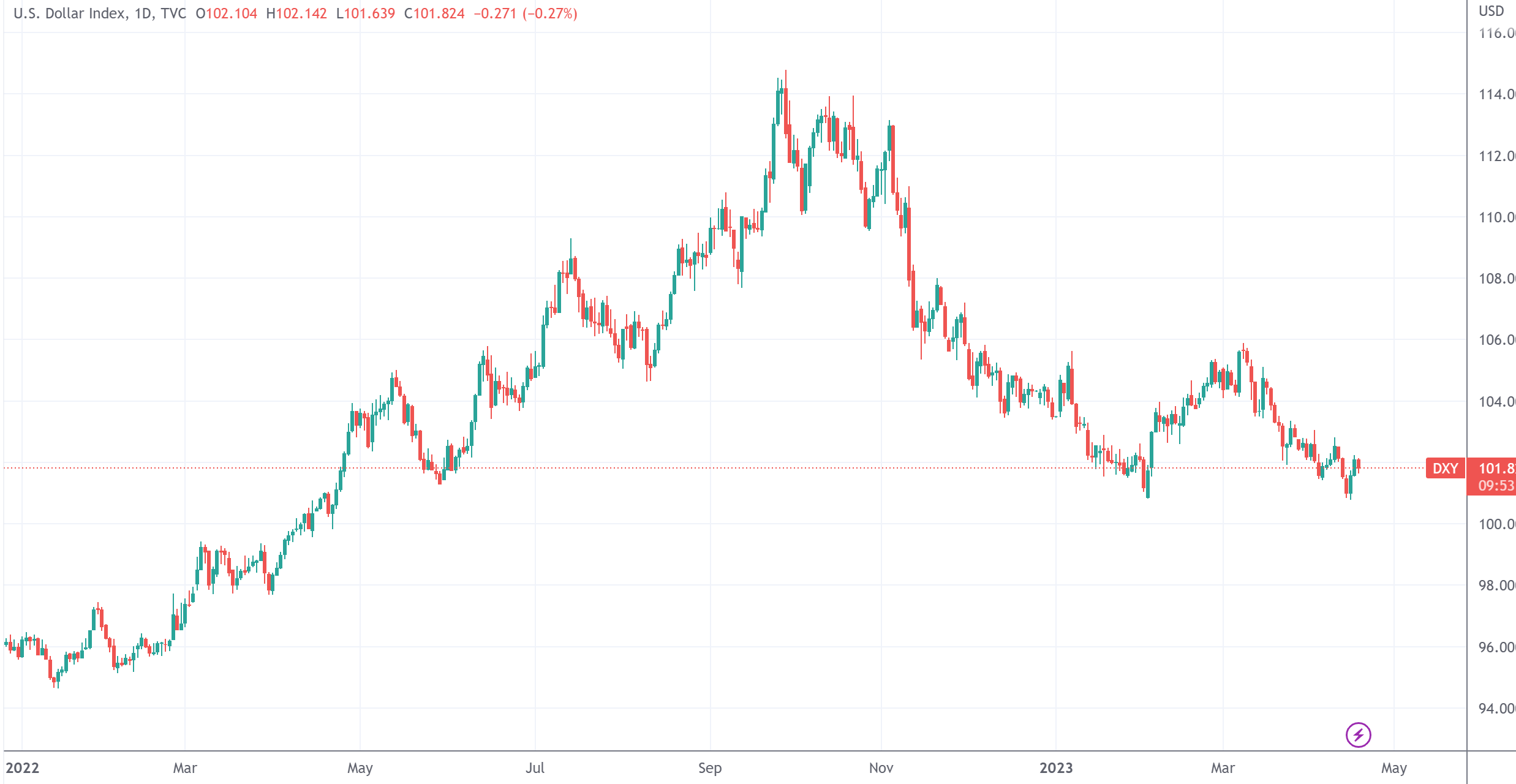 作为上个月美国银行业危机的后果之一,美元指数(101.6634, -0.0791, -0.08%)已经跌至近一年来的低点。