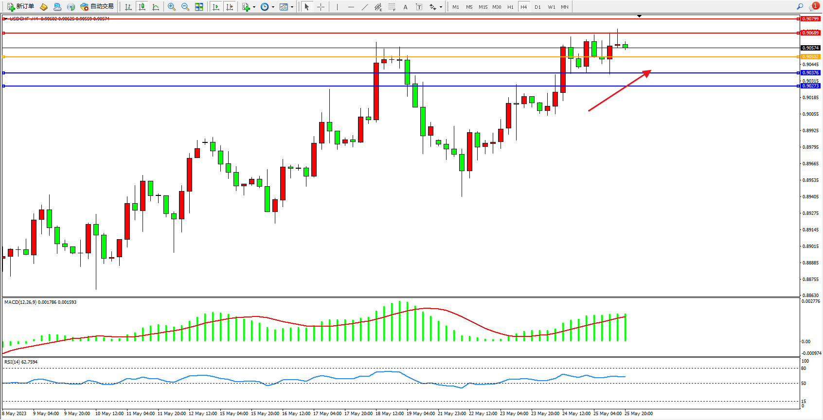 交易策略:0.90502上方看涨,目标0.90689 0.90799